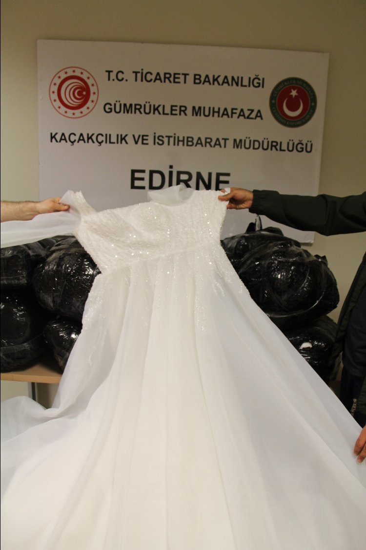 Gümrük Muhafaza ekipleri Kapıkule Gümrük Kapısı’na gelen yabancı uyruklu şahısların bulunduğu bir minibüse düzenlediği operasyonda kaçak olduğu belirlenen 2 milyon 240 bin lira değerindeki çok sayıda gelinliğe el koydu.
