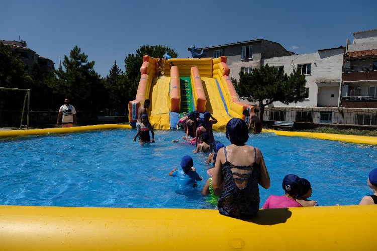 Bursa Büyükşehir Belediyesi, ‘Neşeli Havuzlar Mutlu Çocuklar’ projesi kapsamında 3 ilçedeki 4 okul bahçesine kurduğu portatif yüzme havuzları ile okul bahçelerini adeta tatil köyüne dönüştürdü.
