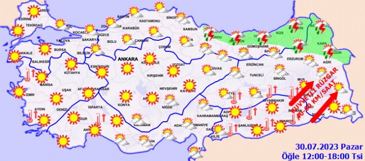 Rüzgarın genellikle kuzey, Doğu Akdeniz, Doğu Anadolu’nun doğusu ile Güneydoğu Anadolu’da güney yönlerden hafif ara sıra orta kuvvette, Doğu Anadolu’nun güneydoğusunda güney ve güneybatı yönlerden kuvvetli (40-60 km/saat) olarak eseceği tahmin ediliyor.