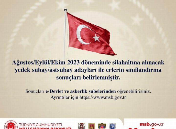 Milli Savunma Bakanlığı, Ağustos-Eylül ve Ekim döneminde silah altına alınacak yedek subay ve astsubay adayları ile erlerin...