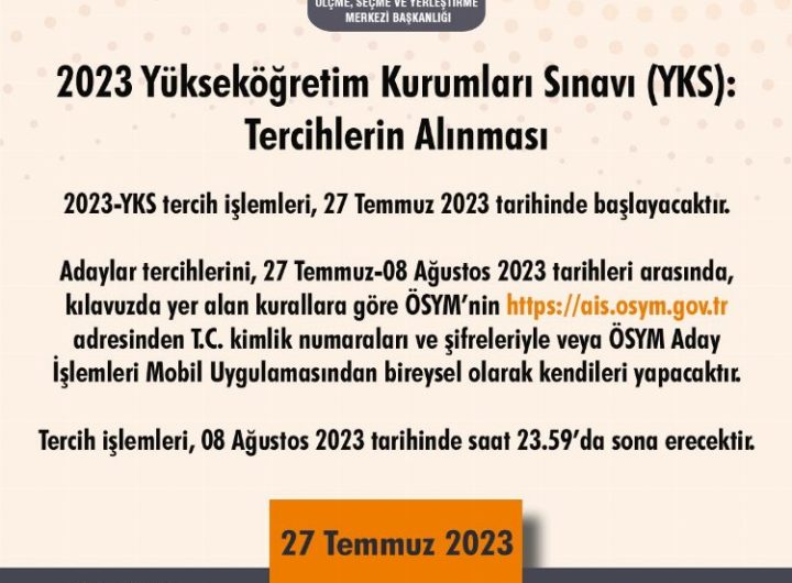 YKS için tercih kılavuzunu yayımlayan ÖSYM, adayların bugün başlayan tercih sürecinin 8 Ağustos’a kadar yapabileceklerini duyurdu. ANKARA...