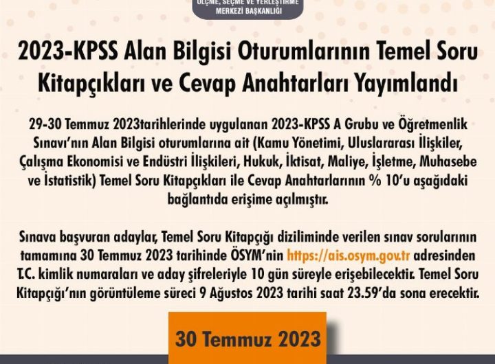 Dün ve bugün uygulanan 2023-KPSS A Grubu ve Öğretmenlik Sınavı’nın temel soru kitapçıkları ile cevap anahtarlarının yüzde...