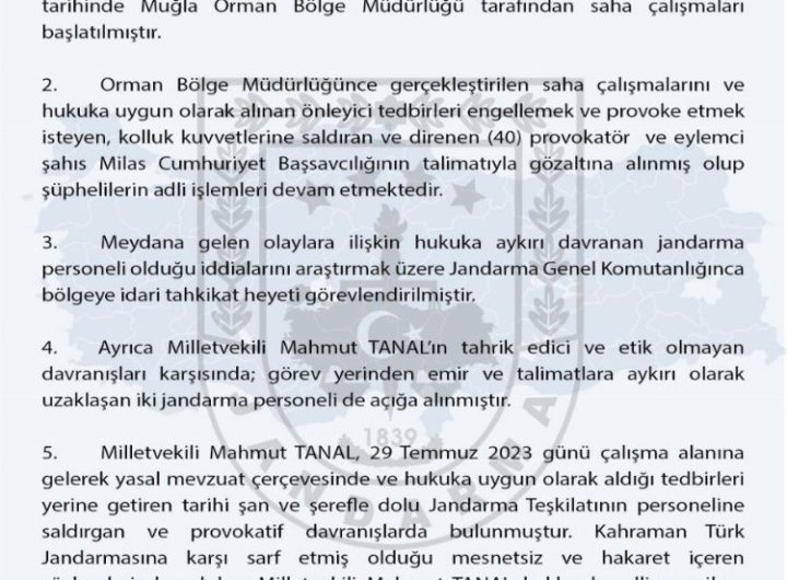 Muğla’nın Milas ilçesi İkizköy Mahallesi’nde meydana gelen olaylara yönelik Jandarma Genel Komutanlığı’ndan yazılı açıklama yapıldı. Jandamra iki...