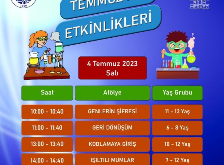 Kayseri Büyükşehir Belediyesi bünyesinde faaliyet gösteren Kayseri Bilim Merkezi, Temmuz ayı ücretsiz atölye çalışmaları için kayıtlar sürüyor....