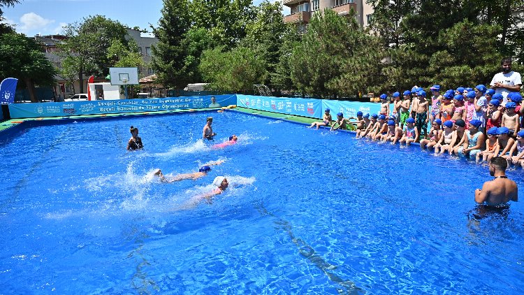 Proje kapsamında yaklaşık 5 bin çocuğun yüzme sporuyla buluşması hedeflenirken, Bursa Büyükşehir Belediye Başkanı Alinur Aktaş da Yıldırım ilçesindeki Fevzi Çakmak İlköğretim Okulu bahçesine kurulan havuzda yüzme eğitimi alan çocukları ziyaret etti.