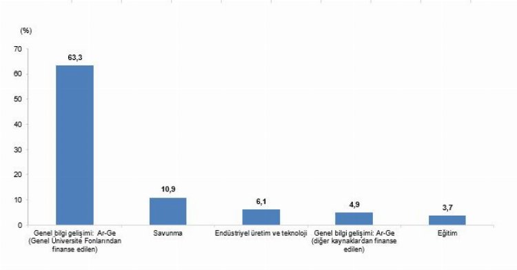 Ar-Ge için merkezi yönetim bütçesinden yapılan harcamalar sosyo-ekonomik hedeflere göre sınıflandırıldığında 2022 yılında en fazla Ar-Ge fonlaması yüzde 63,3 ile genel bilgi gelişimi için üniversitelere yapıldı. Bu sosyo-ekonomik hedefi; sırasıyla yüzde 10,9 ile savunma, yüzde 6,1 ile endüstriyel üretim ve teknoloji, yüzde 4,9 ile genel bilgi gelişimi Ar-Ge (diğer kaynaklardan finanse edilen) ve yüzde 3,7 ile eğitim takip etti.