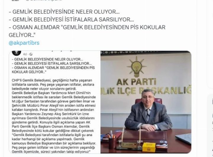 CHP’li Bursa Gemlik Belediyesi, geçtiğimiz hafta yaşanan istifalarla sarsıldı. Peş peşe yaşanan istifalar sonrası “Belediyede neler oluyor?”...