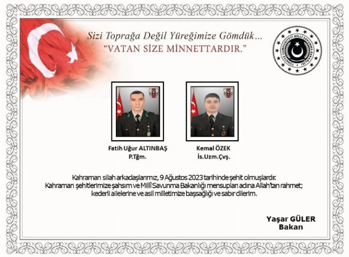 Milli Savunma Bakanlığı, P. Tğm. Fatih Uğur Altınbaş ile İs. Uzm. Çvş. Kemal Özek’in Pençe-Kilit Operasyonu bölgesinde...
