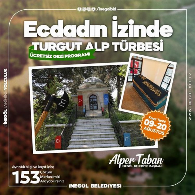 Bursa’da İnegöl Belediyesi, şehrin fatihi olarak bilinen ve Osmanlı döneminde İnegöl’ün Türk yurdu olmasını sağlayan Turgut Alp’in restore edilen türbesine ücretsiz gezi düzenliyor. Kayıtlar 20 Ağustos’a kadar alınacak.