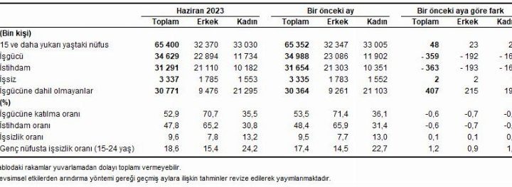 TÜİK’in açıkladığı Haziran ayına ilişkin İşgücü İstatistikleri’ne göre mevsim etkisinden arındırılmış işsizlik oranı Haziran’da yüzde 9,6 seviyesinde...