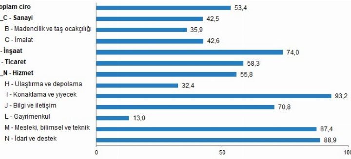 Sanayi, inşaat, ticaret ve hizmet sektörleri toplamında Haziran ayına ilişkin ciro endekslerini açıklayan TÜİK, yıllıkta yüzde 53,4,...
