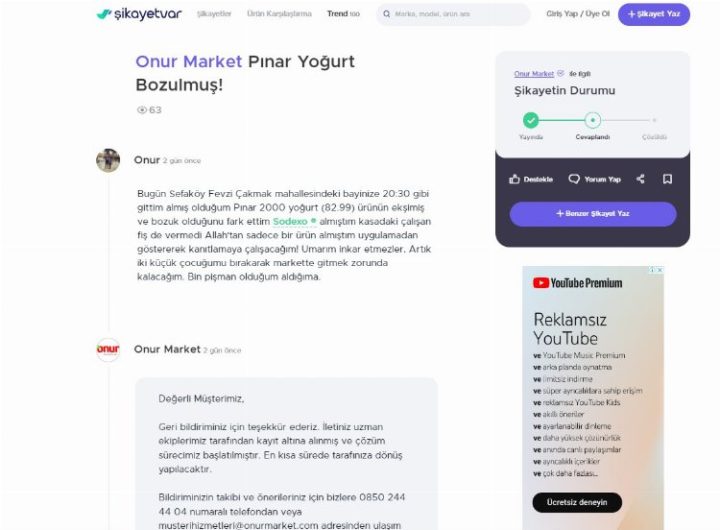 Market alışveriş skandallarına bir yenisi daha eklendi. İstanbul’da Onur Market’ten alışveriş yapan vatandaş, aldığı Pınar yoğurtun bozuk...