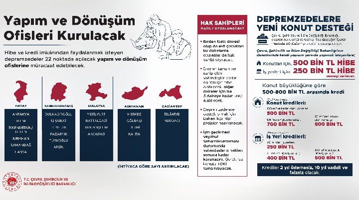 Çevre, Şehircilik ve İklim Değişikliği Bakanlığı, yerinde dönüşüm modeliyle yerinde dönüştürülecek konutlara 500 bin TL ve iş...
