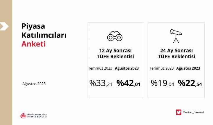 Merkez Bankası Piyasa Katılımcıları Anketi’ne göre, yıl sonu Tüketici Fiyat Endeksi’ndeki artış beklentisi yüzde 59,46 oldu. ANKARA...
