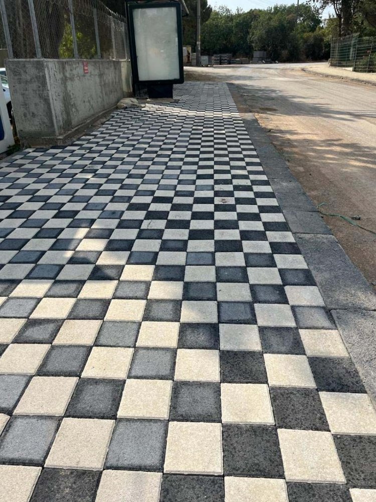 Siyah-beyaz renklerden oluşan minarel parke yaya kaldırımları Yelkenkaya Caddesinin sağlı sollu her iki tarafında da yapılıyor.