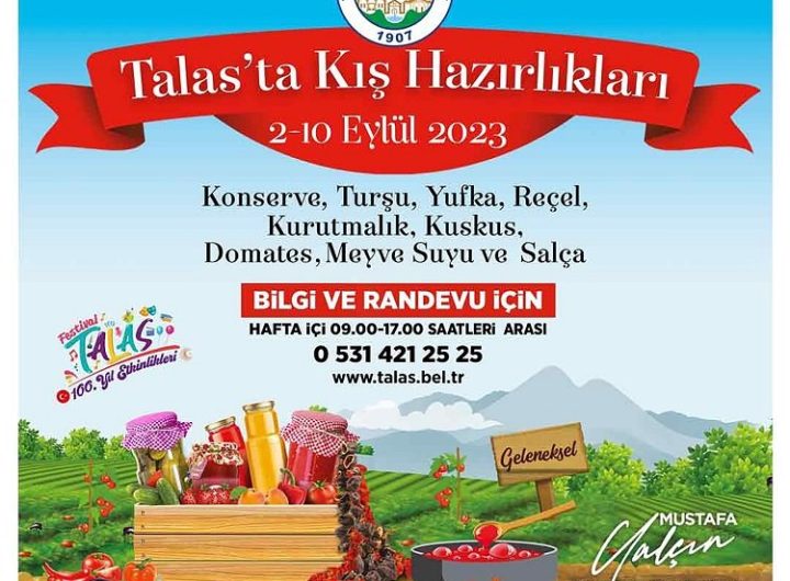 Kayseri’nin Talas Belediyesi tarafından her yıl “Talas’ta Kış Hazırlıkları” adıyla düzenlenen organizasyon bu yıl 2-10 Eylül 2023...