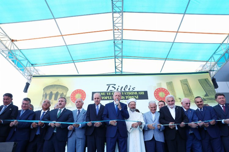 Yerel seçimlerde Bitlis’in 2019’daki gibi geleceğine ve iradesine sahip çıkacağına inancını dile getiren Cumhurbaşkanı Erdoğan, daha sonra Diyanet İşleri Başkanı Ali Erbaş’ın yaptığı duanın ardından yapımı tamamlanan eserlerin açılışı için kurdele kesti.