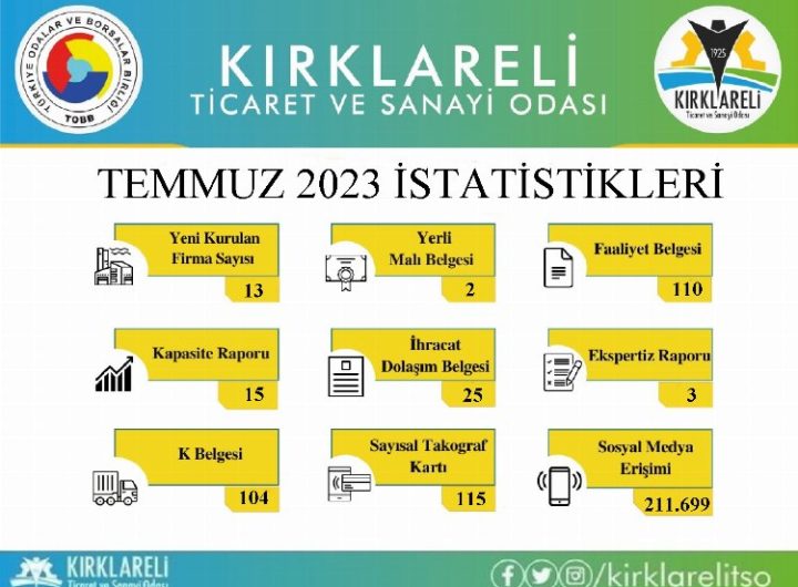 Kırklareli Ticaret ve Sanayi Odası, Temmuz ayında gerçekleştirdiği işlemlerin istatistiklerini paylaştı Erdoğan DEMİR / EDİRNE (İGFA) –...