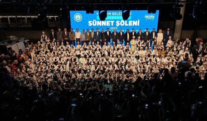 Bursa Yıldırım Belediyesi, bin çocuğun sünnet şöleni dolayısıyla Naim Süleymanoğlu Spor Kompleksi bahçesinde aileler ve çocuklarla bir...