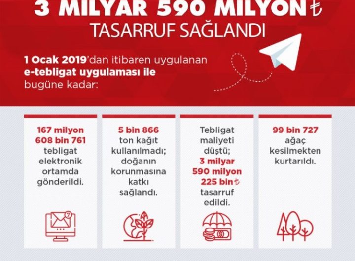 Adalet Bakanlığı’nın yaptığı çalışmalar sonucu, 1 Ocak 2019’dan bu yana elektronik tebligatla 3 milyar 590 milyon 225...