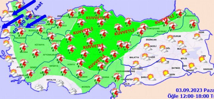 Kuvvetli yağışların İç Anadolu kuzey ve doğusu, Orta Karadeniz , Doğu Karadeniz kıyıları, Kastamonu, Sinop, Eskişehir’in güneyi...
