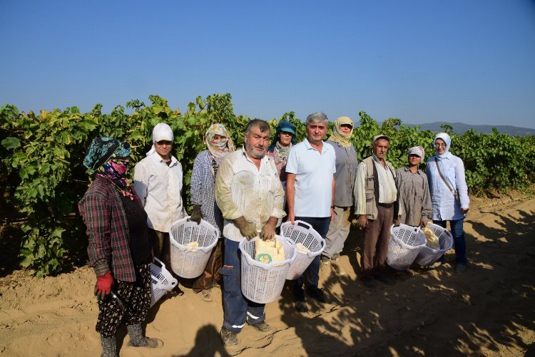 Bu kapsamda Kırsal Hizmetler Dairesi Başkanı Yılmaz Usta, Ahmetli Muhtarlık İşleri Müdürü Nilhan Kılıç ve teknik ekiplerle birlikte, Ahmetli ovasında üzüm hasadı yapan işçilerle bir araya geldi.