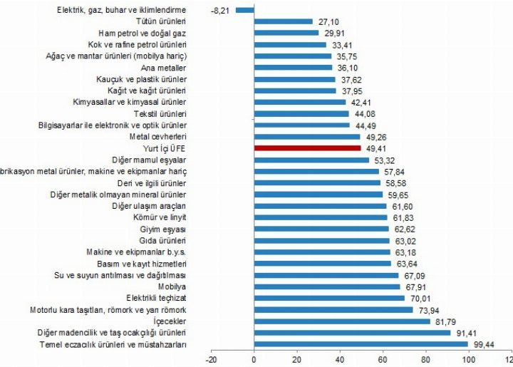 TÜİK’İn açıkladığı Ağustos ayı Yurt İçi Üretici Fiyat Endeksi (Yİ-ÜFE) yıllık yüzde 49,41, aylık ise yüzde 5,89...