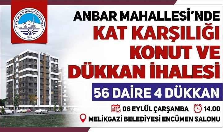 Kayseri Melikgazi Belediye Başkanı Doç. Dr. Mustafa Palancıoğlu, Anbar Mahallesi’nde 1 blok 56 adet daire ve 4...