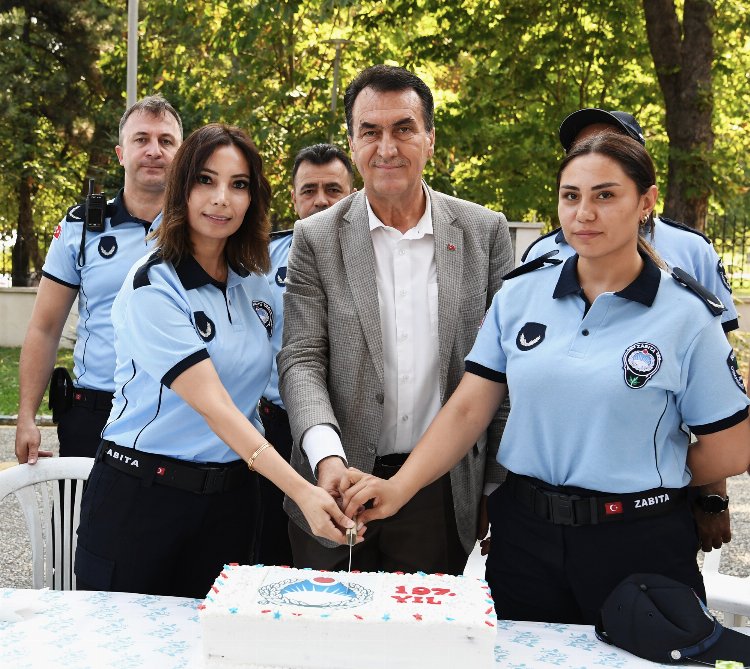 Osmangazi Belediyesi Zabıta Müdürlüğü’nde düzenlenen kutlama programında zabıta personeliyle buluşan Başkan Dündar, personele çiçek vererek özel günlerini tebrik etti. Dündar, ‘Zabıta personelinin 197 yılı kutlu olsun” yazılı pastayı da zabıta personeliyle birlikte kesti.