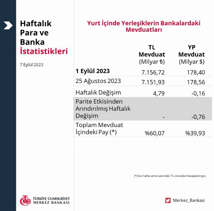 Yurt içi yerleşiklerin toplam yabancı para mevduatındaki değişime bakıldığında, parite etkisinden arındırılmış verilerle 1 Eylül itibarıyla 760 milyon dolarlık azalış görüldü.