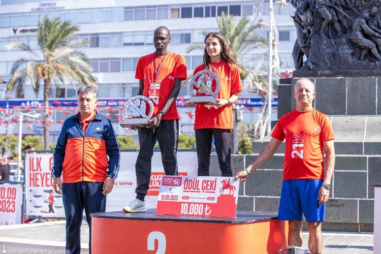 İZMİR (İGFA) – İzmir Büyükşehir Belediyesi’nin düzenlediği 11. Uluslararası 9 Eylül İzmir Yarı Maraton, İzmir’in düşman işgalinden kurtuluşunun 101. yılında büyük heyecana sahne oldu. 2 bin 500 kişinin yarıştığı maratonda; Türk erkeklerde birinciliği Ramazan Baştuğ, kadınlarda ise Bahar Atalay elde etti. Genel klasman erkeklerde Kenyalı Frankline Keitanyi altın madalyaya ulaşırken, yine Kenyalı Meshack Kimutai Kibil ikinciliği, Ramazan Baştuğ ise üçüncülüğü aldı. Kadınlarda Kenyalı Ivyne Jeruto Lagat birinci, Bahar Atalay ikinci, Dilan Atak ise üçüncü olarak koşuyu tamamladı. İzmirliler, maratona katılan sporcuları yarış güzergahı boyunca alkışlayarak destekledi. Yarışta İzmir Büyükşehir Belediyesi Genel Sekreter Yardımcısı Ertuğrul Tugay da koştu.