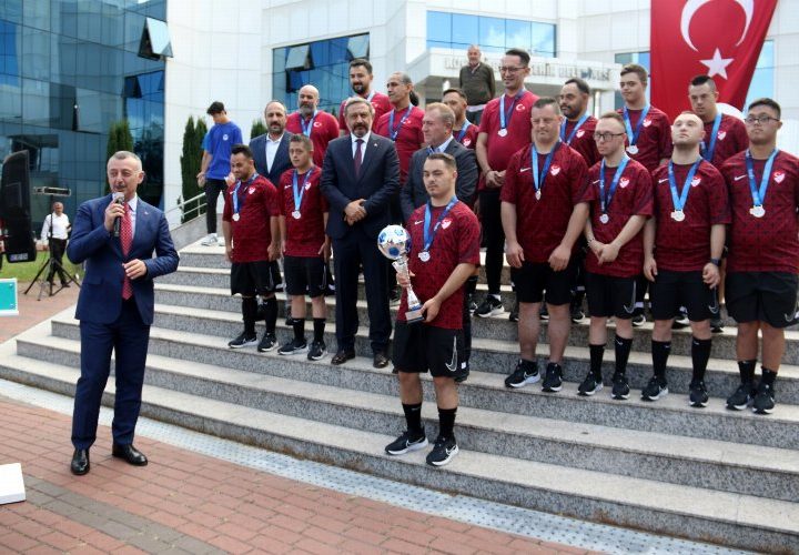 Down Sendromlular Avrupa Şampiyonası’nı kazanan Down Sendromlular Özel Futsal Milli Takımı, Avrupa Kupası ile birlikte Kocaeli Büyükşehir...