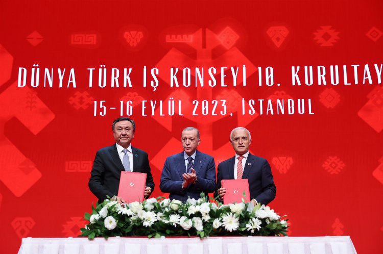 Dünya Türk İş Konseyi 10. Kurultayı’nda konuşan Cumhurbaşkanı Erdoğan, Türk dünyasının gelişmeye açık muhteşem medeniyet birikiminin güçlü devlet geleneği, sağlam sosyal yapısı, vizyoner sivil toplum kuruluşlarıyla adeta yeni bir uyanış, yeni bir şahlanış içinde olduğunu söyledi.