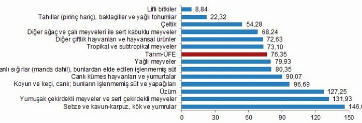 Tarım Ürünleri Üretici Fiyat Endeksi (Tarım-ÜFE) Ağustos ayında bir önceki aya göre yüzde 3,83, geçen yılın aynı...