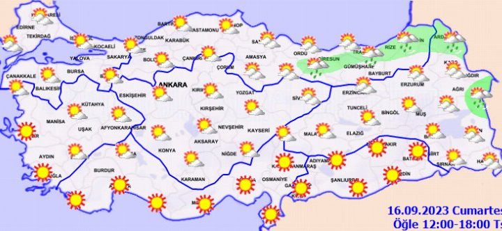 Ülkemizin kuzey ve doğu kesimlerinin parçalı, yer yer çok bulutlu, Samsun, Rize, Artvin ve Ardahan çevreleri, Ordu,...