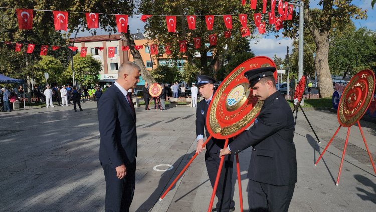 Gölcük Kaymakamı Müfit Gültekin, Gölcük Deniz Ana Üs ve Garnizon Komutanı Tuğamiral Ali Tuna Baysal, Gölcük Belediye Başkanı Ali Yıldırım Sezer ve Gaziler Derneği Gölcük Şubesi Başkanı Mehmet Arslan’ın Atatürk Anıtı’na çelenk sunmasıyla başlayan tören, askeri bando eşliğinde bir dakikalık saygı duruşu ve akabinde de; İstiklal Marşı’nın okunması ile devam etti. Tören; günün anlam ve önemini belirten konuşmaların yapılması ile son buldu.