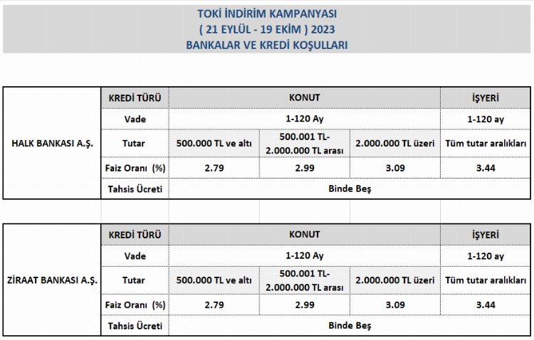 Kampanyadan geri ödeme taksitleri en geç 2022 yılı haziran ayı sonuna kadar başlamış olan konut ve iş yerleri alıcıları yararlanabilecek. Taksit sayısı 12 ay ve daha az kalan konut ve iş yeri alıcıları indirim kampanyasından yararlanamayacak.