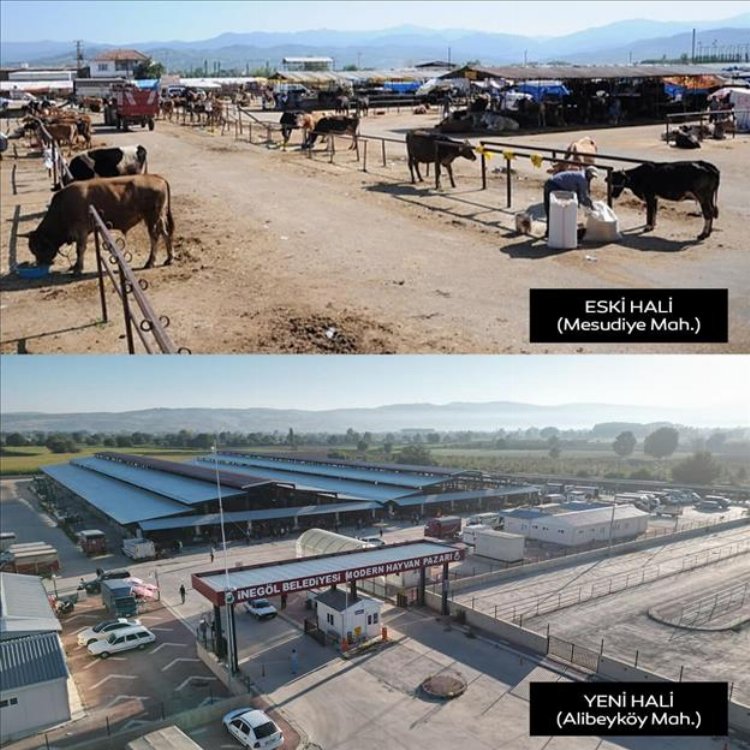 Daha önce Mesudiye Mahallesinde eski yöntemlerle, derme çatma padoklarla ve gelişigüzel oluşturulmuş atık alanlarıyla hizmet veren İnegöl Hayvan Pazarı, 2021 yılında Alibeyköy Mahallesi bölgesinde oluşturulan Modern Hayvan Pazarına taşındı. Burada 14 bin m2 alanda hayata geçirilen Modern Hayvan Pazarında 12 bin m2 kapalı alan ve 2 bin m2 açık alan olmak üzere; İdari Bina, hayvan satıcılarının konaklaması için yatakhane, tuvaletler, duşlar, mescit, kafeterya ve yeme içme alanı, karantina binası, yem deposu ve veteriner noktası gibi alanlar mevcut.