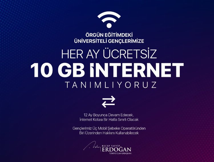 Gençlere verdikleri tüm sözlerin takipçisi olduklarını, bugünkü Kabine Toplantısı’nda bu kapsamda önemli kararlar aldıklarını aktaran Cumhurbaşkanı Erdoğan, örgün eğitimdeki üniversiteli gençlere vaadi olan cep telefonu ve bilgisayar desteğini hayata geçireceklerini söyledi. “Üniversiteli gençlerimize piyasa satış fiyatı 9 bin 500 lirayı geçmeyen cep telefonu ve bilgisayarlar için toplamda 5 bin 500 liraya kadar teknolojik cihaz desteği vereceğiz” diyen Erdoğan, “Bu destekle cep telefonu için piyasa fiyatının yüzde 44,4’üne, bilgisayarlar için ise piyasa fiyatının yüzde 16,7’sine kadar bir tutarda destek sağlayacağız. Yine örgün eğitimdeki üniversiteli gençlerimize bir hatla sınırlı olmak üzere 12 ay boyunca aylık ücretsiz 10 GB kota tanımlıyoruz. Gençlerimiz bu haklarını istedikleri 3 mobil şebeke operatöründen biri üzerinden kullanabilecekler. Gerek teknolojik cihaz desteği gerekse ücretsiz 10 GB kota desteğiyle üniversiteli gençlerimizin teknolojiye ve bilgiye erişimini artıracağız. Bu gençlerimize her iki desteğe ilişkin uygulama esasları Bakanlıklarımızca belirlenecektir” diye konuştu.