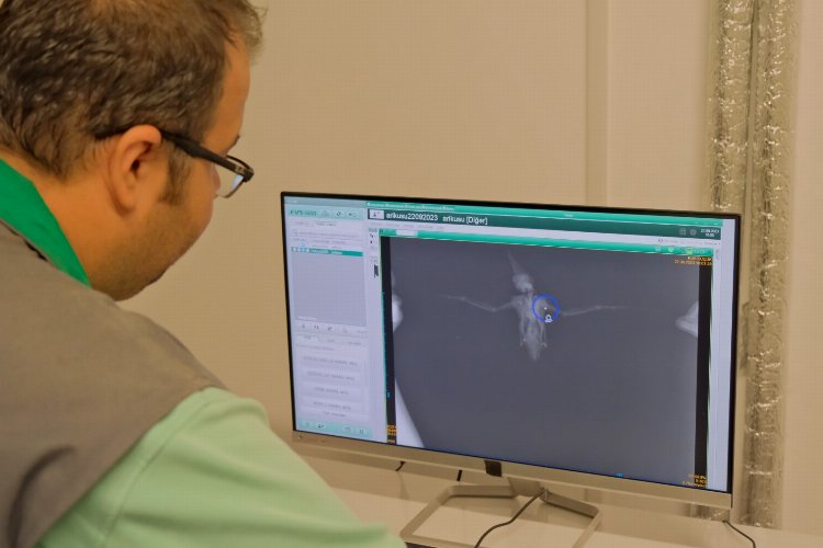 Müdahale sırasında kanatlarında yaralanma olduğu belirlenen arı kuşuna röntgen çekildi. Röntgen esnasında arı kuşunun kanadında saçma izlerine rastlandı.