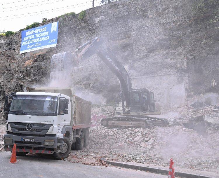 Riskli bölgedeki binaların yıkılmasıyla Üftade Hazretlerinin Türbe ve Camisi’nin bulunduğu alandaki yüzlerce yıllık tarihi sur duvarları Osmangazi Belediyesi’nin çalışmasıyla gün yüzüne çıkmış oldu.
