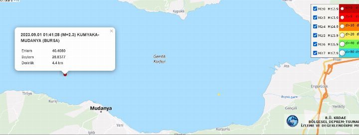 Kandilli Rasathanesi ve AFAD, iki gecedir Gemlik Körfezi’nde merkez üssü Mudanya Kumyaka açıkları olduğu belirlenen 2 ile...