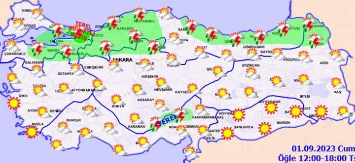 Ülkemizin kuzey kesimleri ile Akdeniz’in iç ve doğu kesimlerinin parçalı yer yer çok bulutlu, Marmara’nın doğusu, Batı...