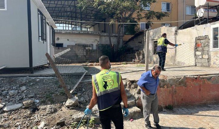 Hatay Büyükşehir Belediyesi, il genelinde haşere ve vektör ile mücadele çalışmalarını sürdürerek ilaçlama çalışmaları gerçekleştiriyor. HATAY (İGFA)...