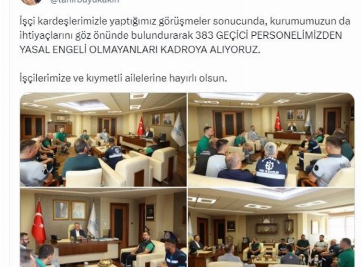 Kocaeli Büyükşehir Belediye Başkanı Tahir Büyükakın, 383 geçici personelden yasal engeli olmayanları kadroya alacaklarını açıkladı KOCAELİ (İGFA)...