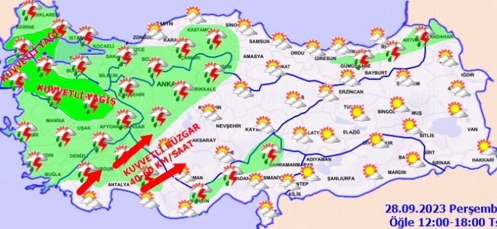 Meteoroloji, kuvvetli yağış ve fırtına beklenen Çanakkale, Tekirdağ, Balıkesir, Kütahya, İstanbul’un batısı, Manisa, Edirne ve Bursa’da yaşanabilecek...
