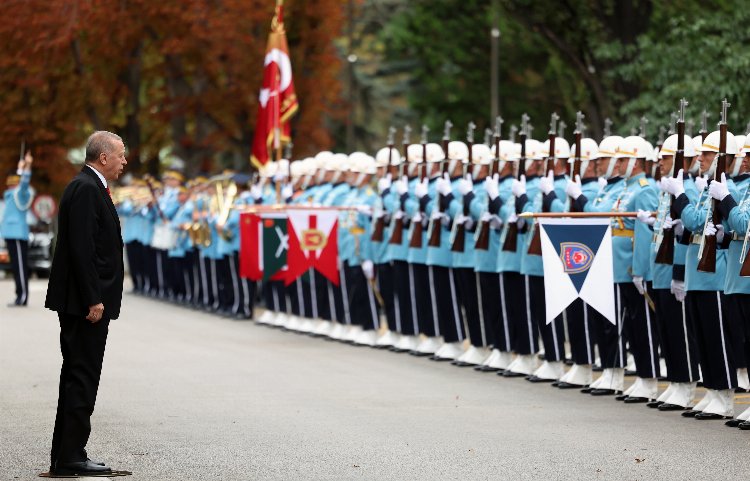 Cumhurbaşkanlığı Tören Birliği kıtasını selamlayan Cumhurbaşkanı Erdoğan, Şeref Kapısı önünde kendisini karşılayan TBMM Başkanı Numan Kurtulmuş ile Genel Kurul salonuna geçti.