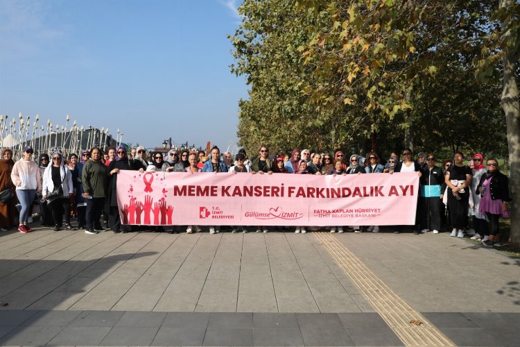 İzmit Belediyesi Spor İşleri Müdürlüğünün organize ettiği Sağlıklı Yaşam Yürüyüşüne katılan İzmitli kadınlar bu hafta meme kanserine dikkat çekmek için yürüdü