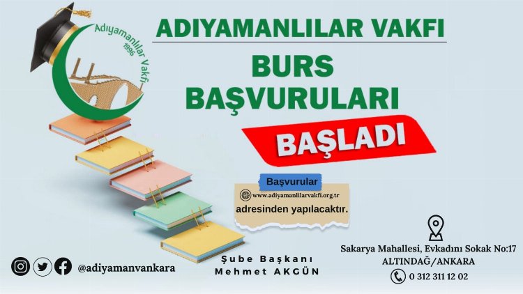 İmkanı olan ile ihtiyacı olan arasında köprüdür anlayışını benimseyen Adıyamanlılar Vakfı, 2023-2024 eğitim yılı için burs başvuruları başlattığını açıkladı.