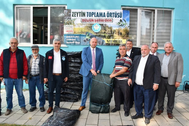 Manisa Büyükşehir Belediyesi, 20 dekar ve altı üretim yapan 7500 zeytin üreticisinin hasat sırasında ve sonrasında kullanacağı; kişi başı 4 adet 5×8 metre ölçülerindeki zeytin toplama örtülerinin dağıtımına Saruhanlı’da başladı.